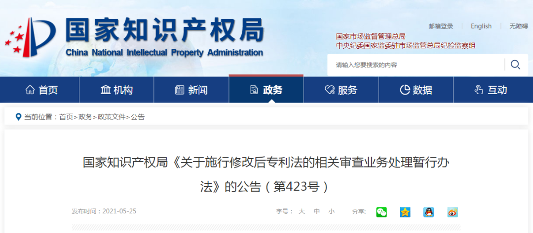 5月(yuè)28日(rì),國(guó)家(jiā)知(z$β >hī)識産權局網站(zhàn)發布